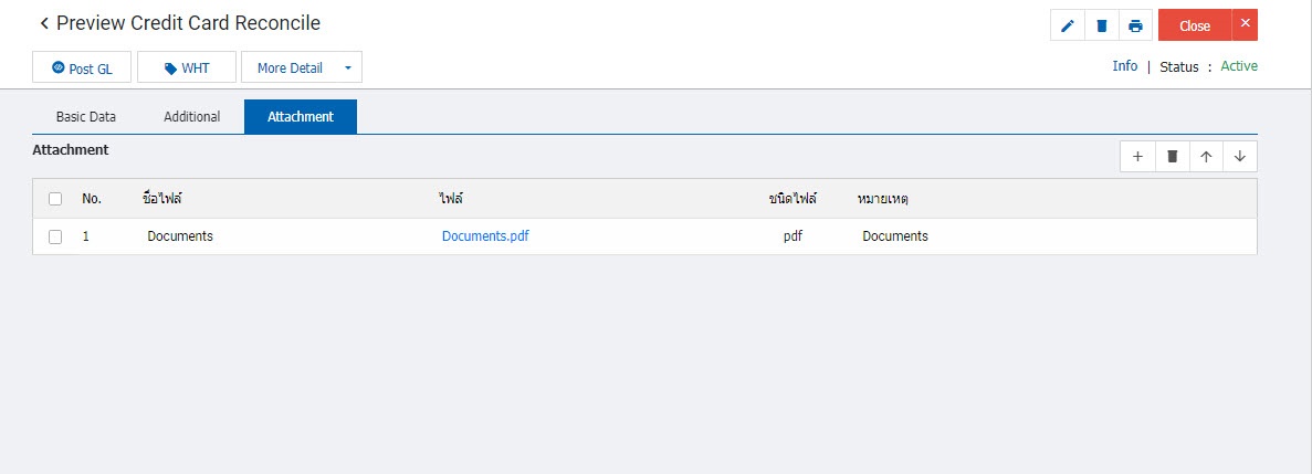 Tab Attachment ใช้สำหรับกรณีต้องการแนบไฟล์เอกสารประเภทปรับยอดจากการรับชำระบัตรเครดิตสามารถแนบไฟล์ เช่น Word PDF EXCEl รวมถึงไฟล์รูปต่างๆ และ ไฟล์ ZIP เป็นต้นโดยสามารถจำกัดความจุของไฟล์เอกสารที่ใช้แนบได้