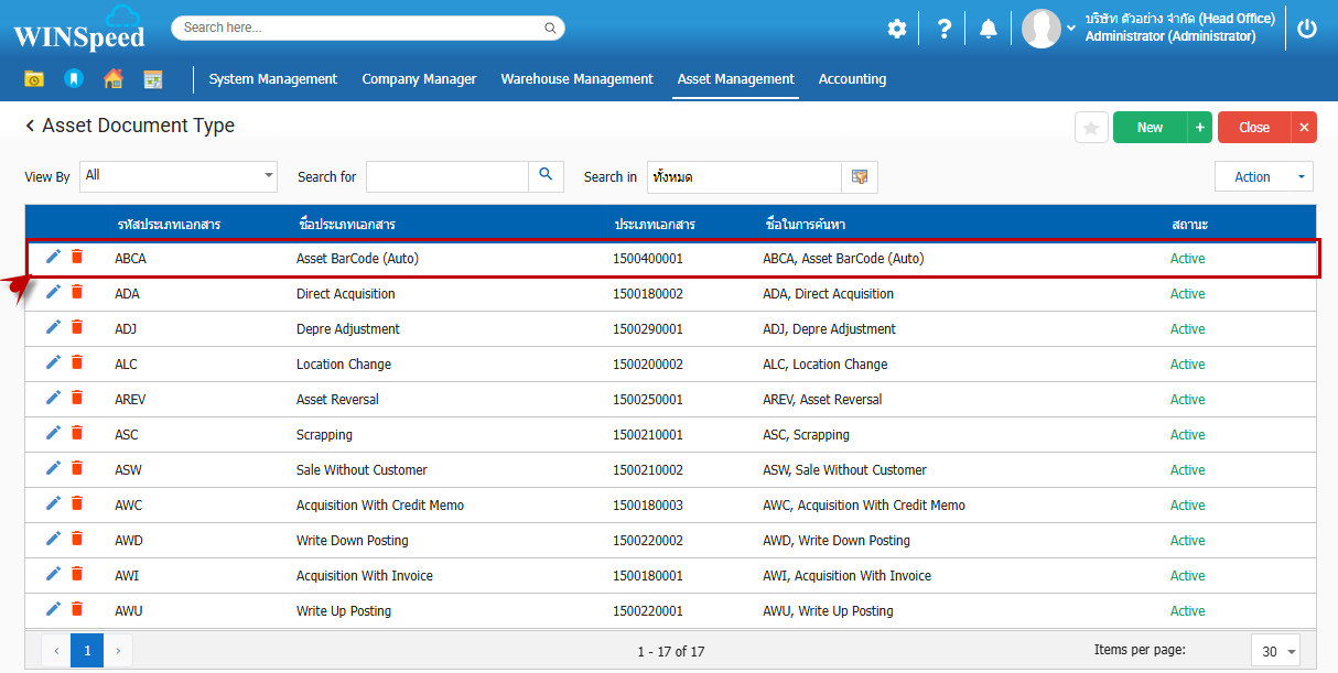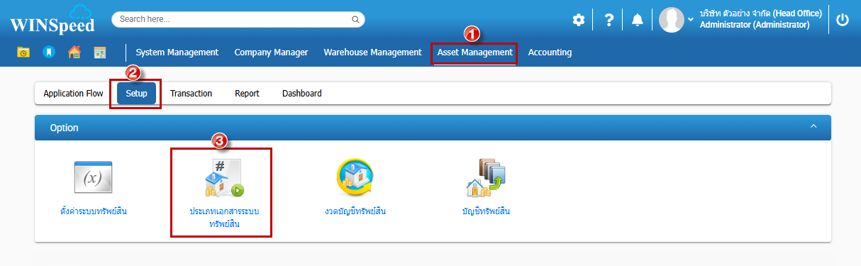 1.สามารถเข้าไปที่ Asset Management > Setup > Option >ประเภทเอกสารระบบทรัพย์สิน