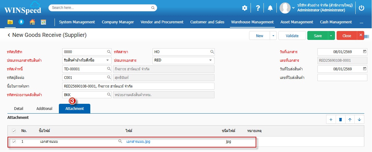 5.Attachment ใช้สำหรับกรณีต้องการแนบไฟล์เอกสารให้กับหน้าจอรับสินค้า (จากผู้ขาย)เลขที่นั้นๆ สามารถแนบไฟล์ เช่น Word Pdf Excel รวมถึงไฟล์รูปต่างๆ และ ไฟล์ Zip เป็นต้น โดยสามารถจำกัดความจุของไฟล์เอกสารที่ใช้แนบได้