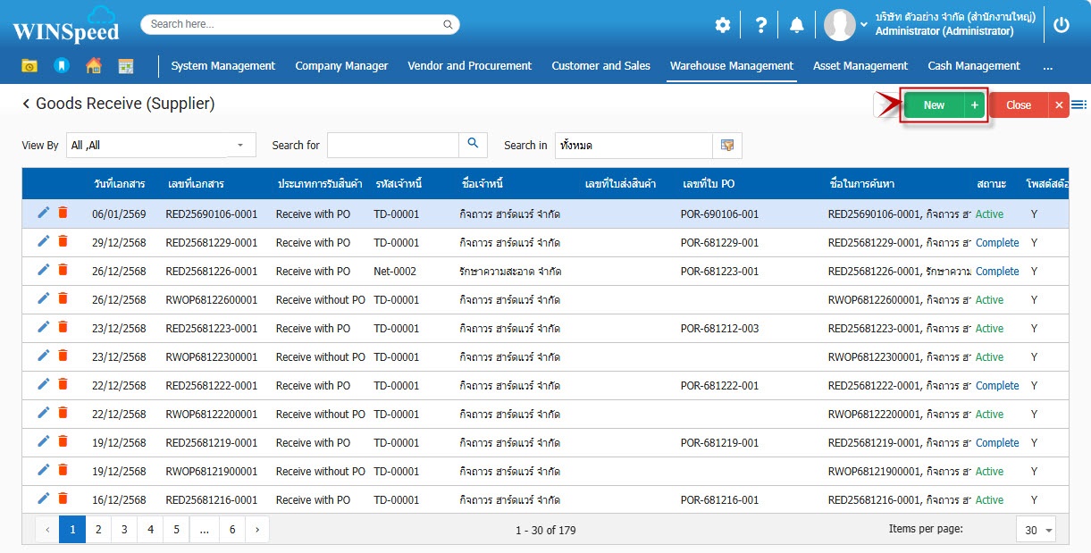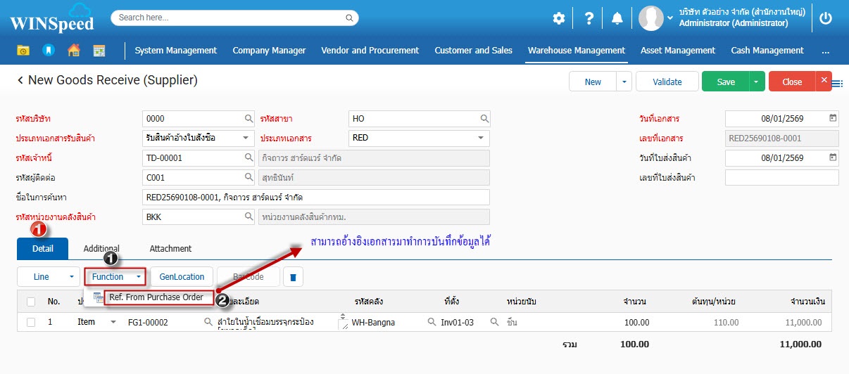1.สามารถเข้าที่ระบบ Customer and Sales-> Transaction -> รับสินค้า (จากผู้ขาย)