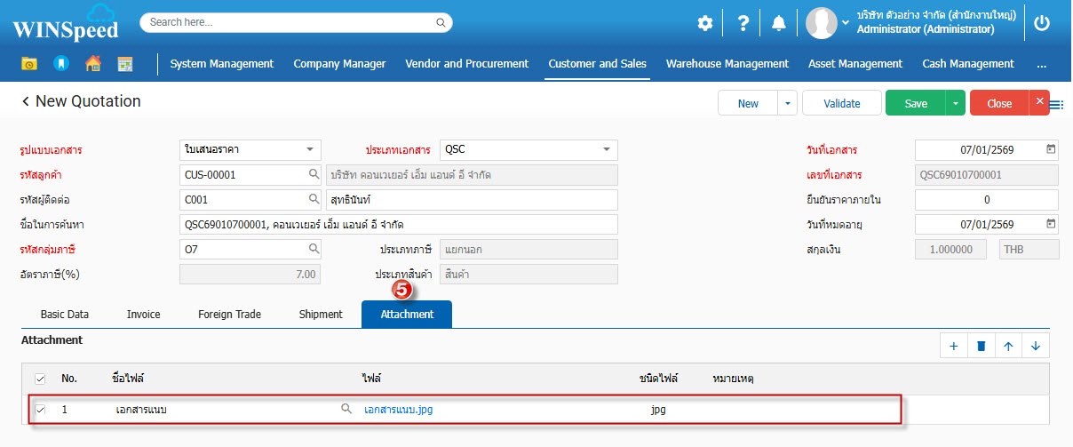 7.Attachment ใช้สำหรับกรณีต้องการแนบไฟล์เอกสารให้กับหน้าจอใบเสนอราคา เลขที่นั้นๆ สามารถแนบไฟล์ เช่น Word Pdf Excel รวมถึงไฟล์รูปต่างๆ และ ไฟล์ Zip เป็นต้น โดยสามารถจำกัดความจุของไฟล์เอกสารที่ใช้แนบได้