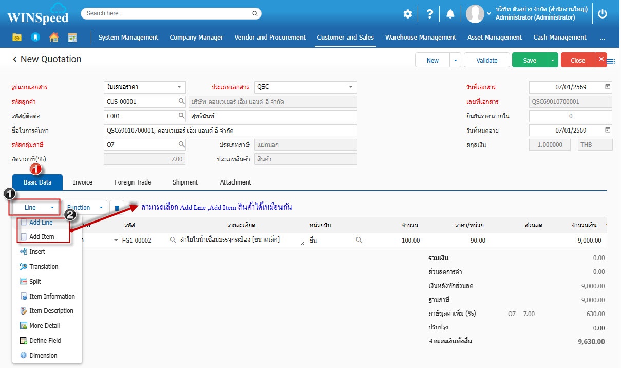 3.Basic Data กำหนดรหัสลูกค้า และรายละเอียดสินค้าที่ต้องการเสนอราคา