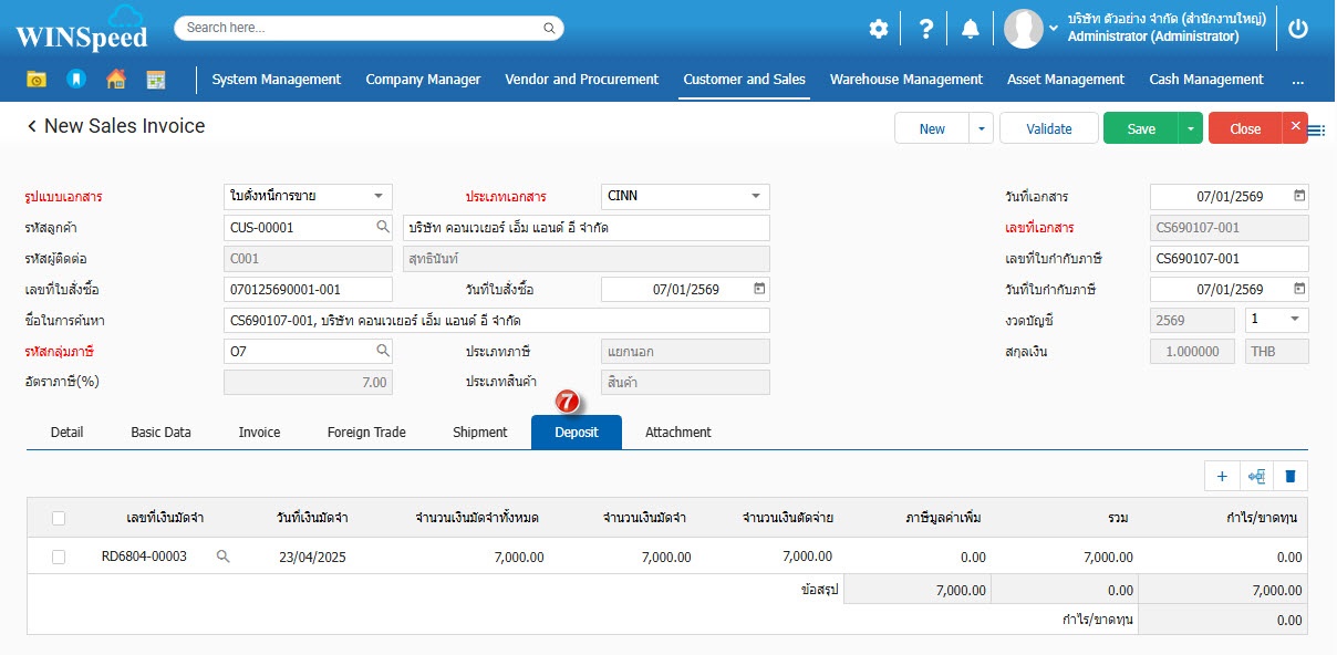 8.Deposit บันทึกข้อมูลการรับเงินมัดจำ เพื่อตัดยอดลูกหนี้การขาย
