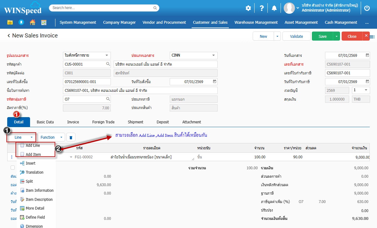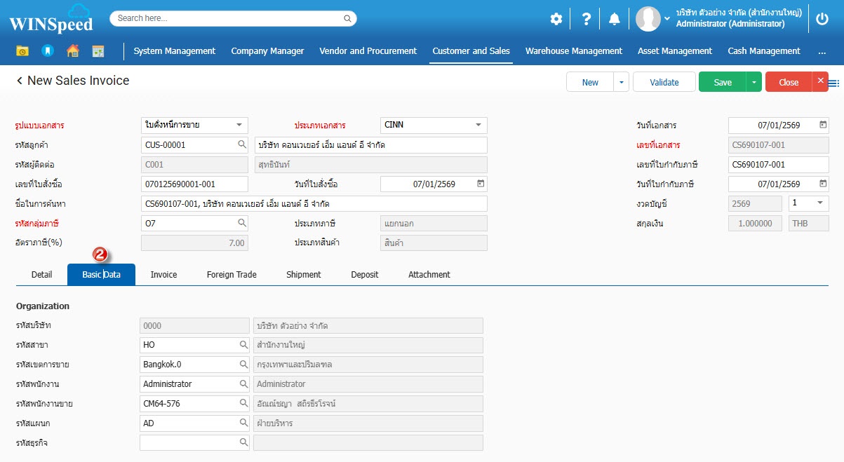4.Basic Data กำหนดรหัสลูกค้า และรายละเอียดสินค้าที่ต้องการตั้งหนี้การขาย