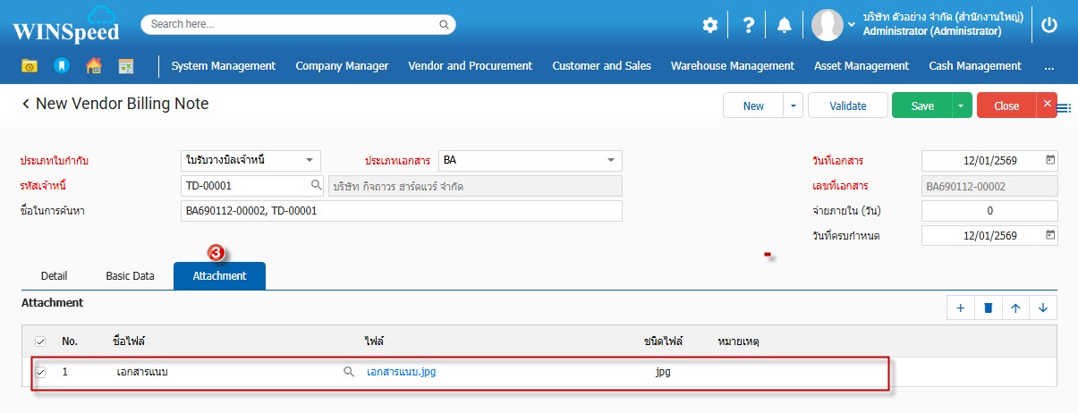 5.Attachment ใช้สำหรับกรณีต้องการแนบไฟล์เอกสารให้กับหน้าจอใบรับวางบิลเจ้าหนี้ เลขที่นั้นๆ สามารถแนบไฟล์ เช่น Word Pdf Excel รวมถึงไฟล์รูปต่างๆ และ ไฟล์ Zip เป็นต้น โดยสามารถจำกัดความจุของไฟล์เอกสารที่ใช้แนบไฟล์