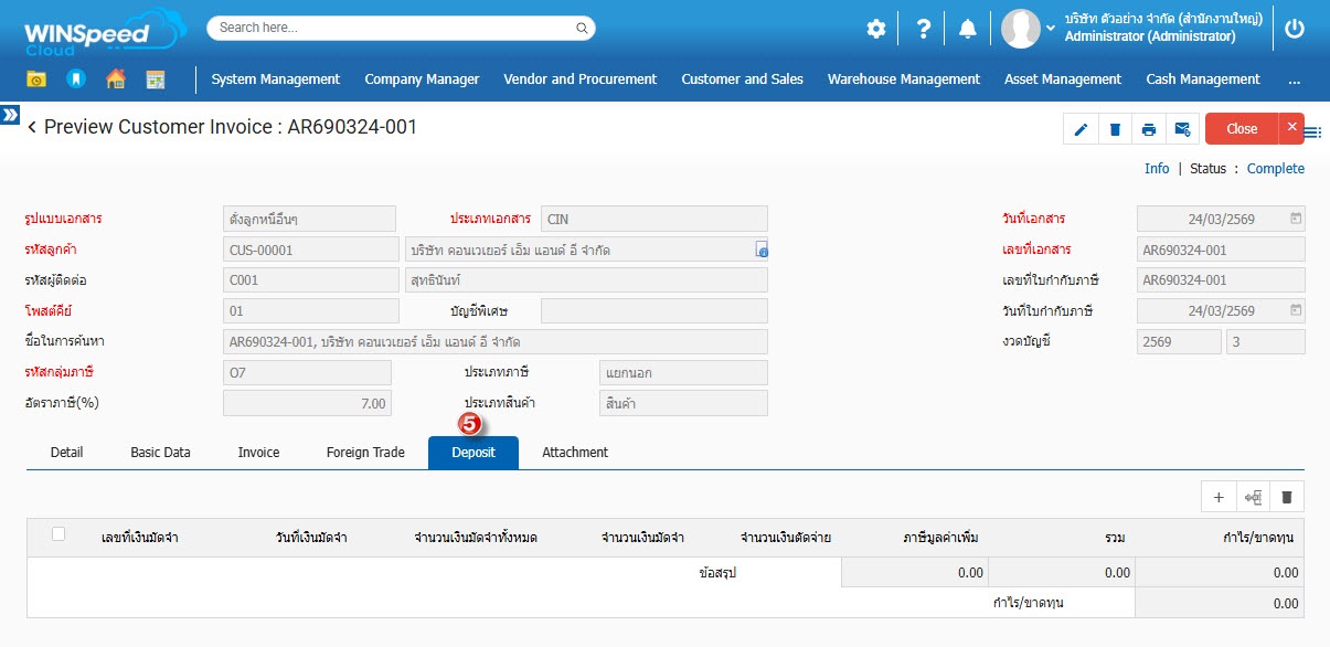 7.Deposit บันทึกอ้างอิงเอกสารใบมัดจำ