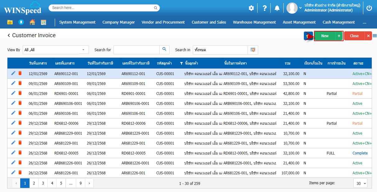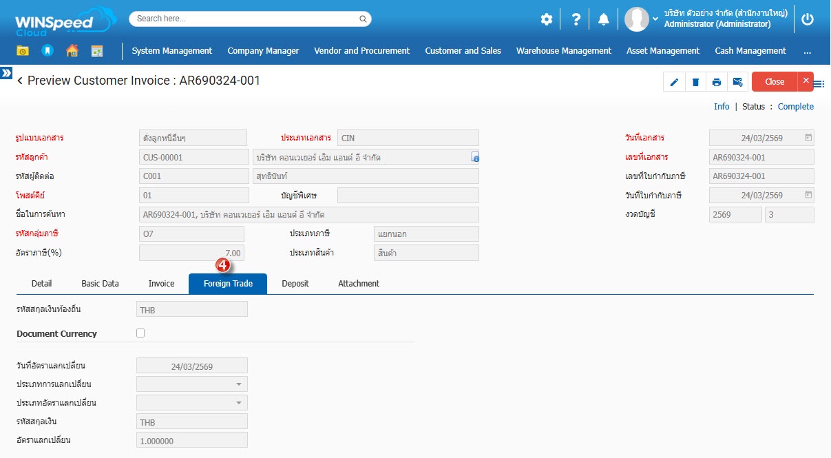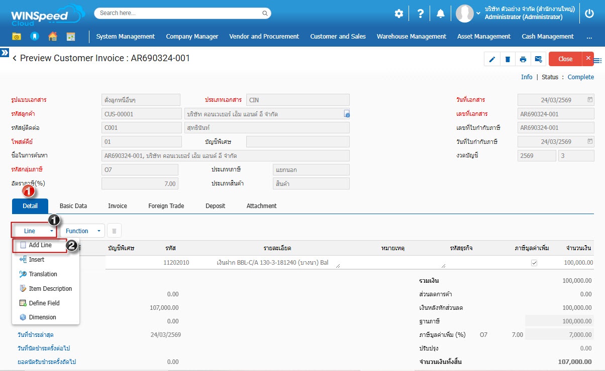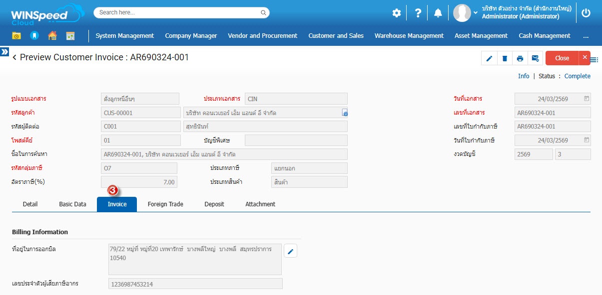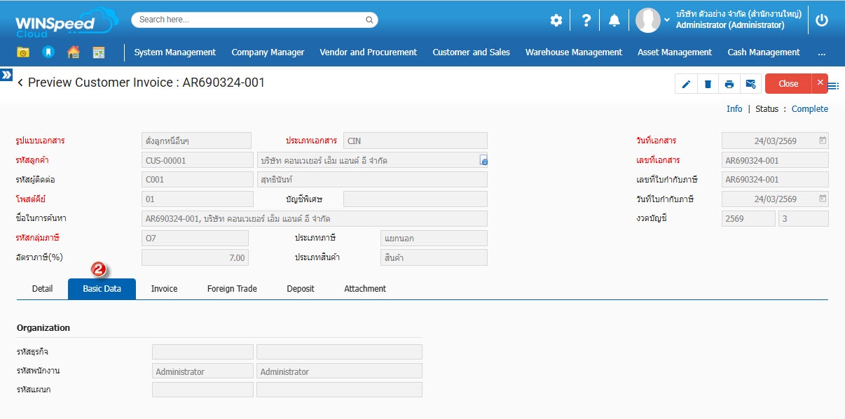3.Basic Data บันทึกรายละเอียดเอกสารใบตั้งหนี้ลูกหนี้ เช่น เลขที่เอกสารวันที่เอกสาร ผู้ซื้อ สินค้าที่สั่งซื้อ จำนวน ราคา เป็นต้น