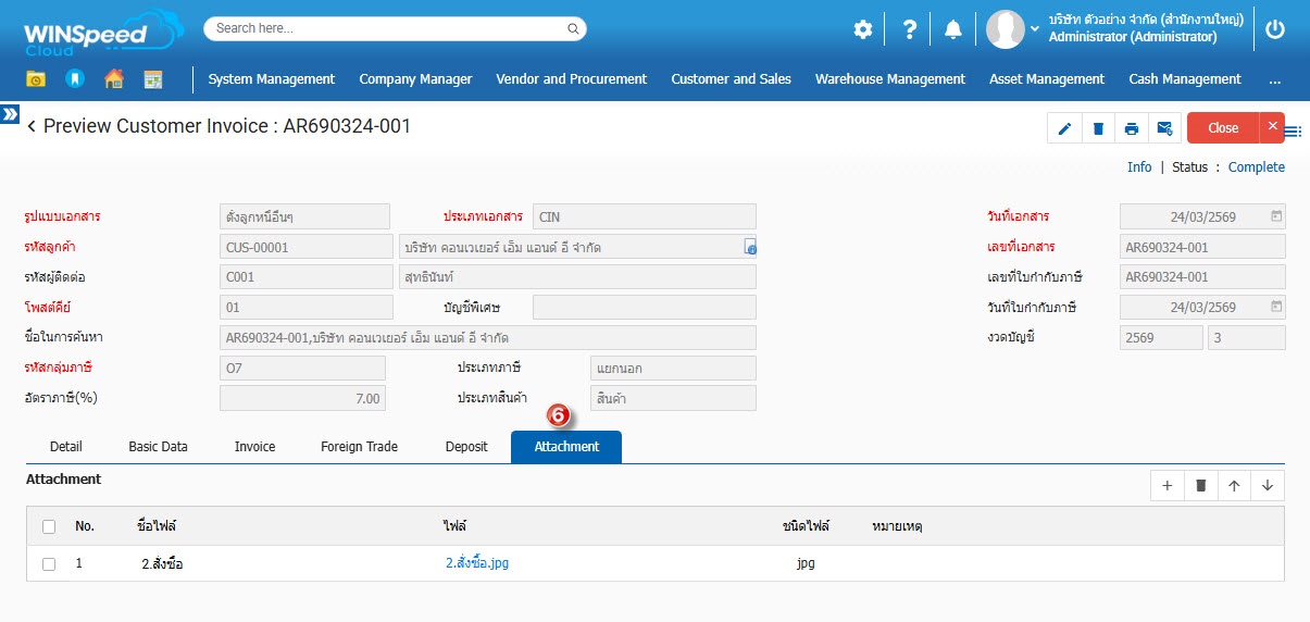 8.Attachment ใช้สำหรับกรณีต้องการแนบไฟล์เอกสารให้กับหน้าจอตั้งลูกหนี้อื่นๆ เลขที่นั้นๆ สามารถแนบไฟล์ เช่น Word Pdf Excel รวมถึงไฟล์รูปต่างๆ และ ไฟล์ Zip เป็นต้น โดยสามารถจำกัดความจุของไฟล์เอกสารที่ใช้แนบได้