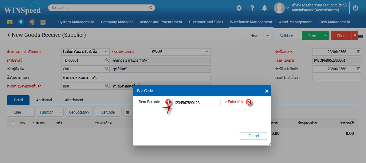 5. Enter Key แล้วข้อมูลสินค้าจะขึ้นมาให้อัตโนมัติตามด้านล่าง