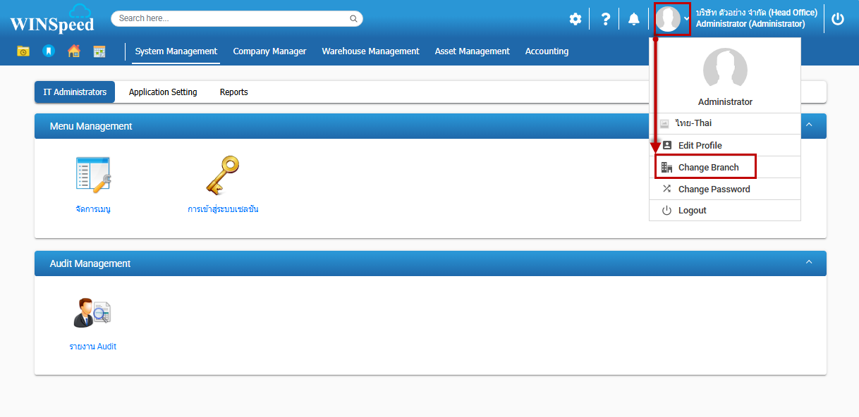 1.ผู้ใช้สามารถเข้าไปที่รูป Users > Change Branch