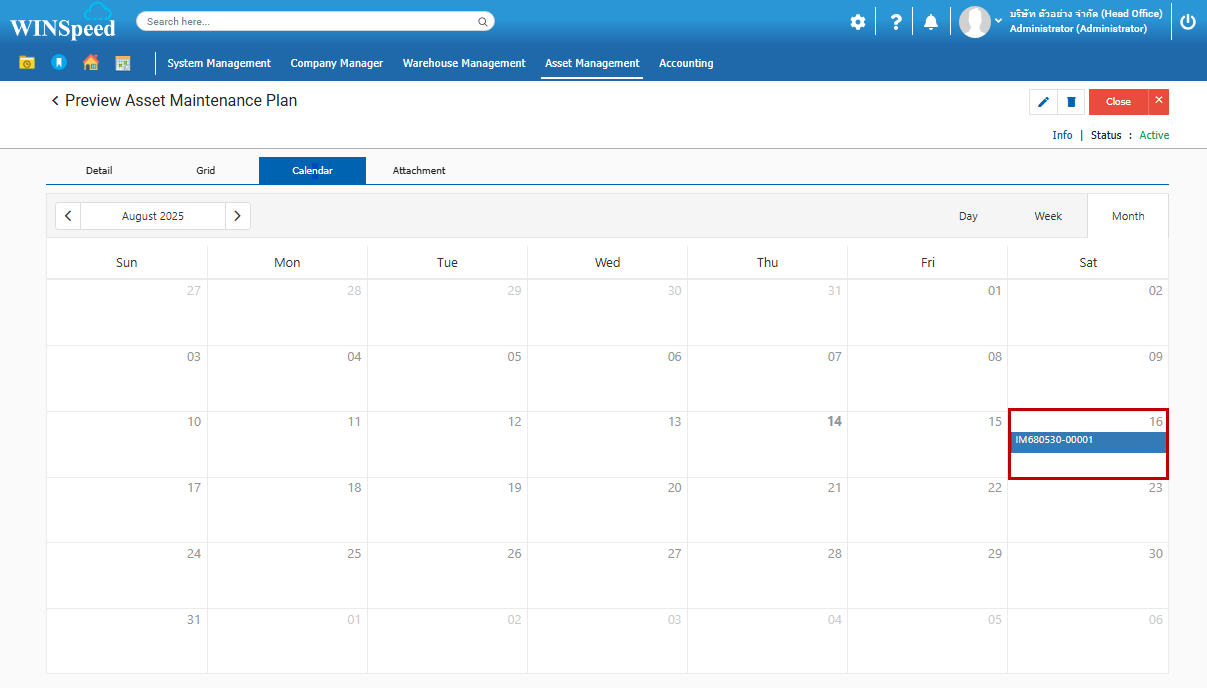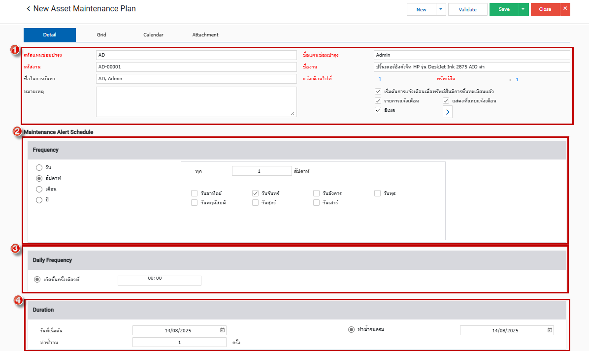 บันทึกแผนการซ่อมบำรุงทรัพย์สินเพื่อให้แจ้งเตือนในระหว่างการซ่อมบำรุงของทรัพย์สิน มีขั้นตอนดังนี้