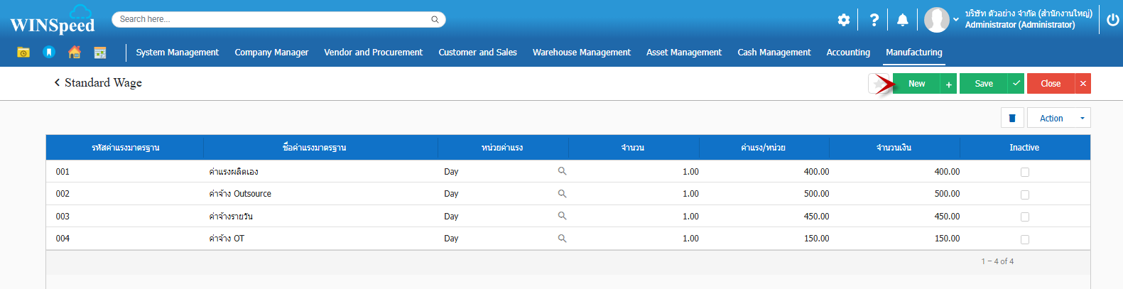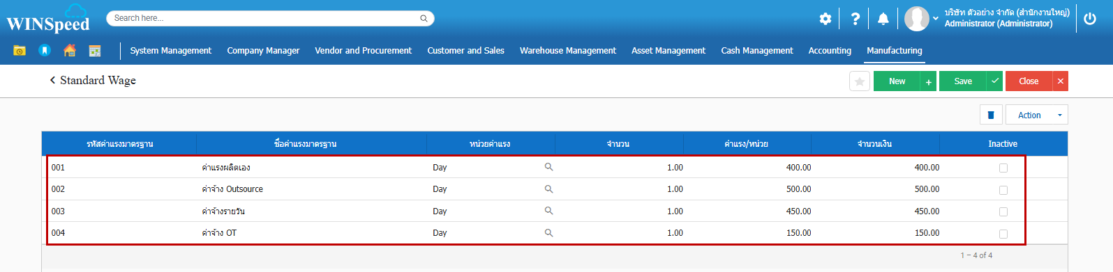 ค่าแรงมาตรฐาน (Standard Wage) หน้าต่างค่าแรงมาตรฐานเพื่อกำหนดค่าแรงมาตรฐานนำไปใช้ในการคำนวณค่าแรงทางตรงในกระบวนการผลิต