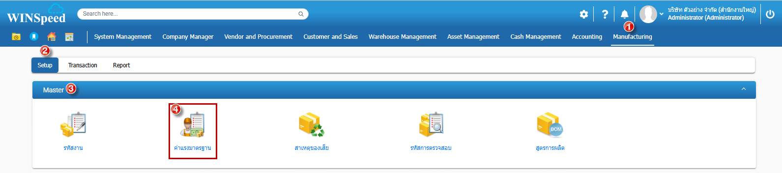 1.สามารถเข้าที่ระบบ Manufacturing > Setup > Master > คลิก