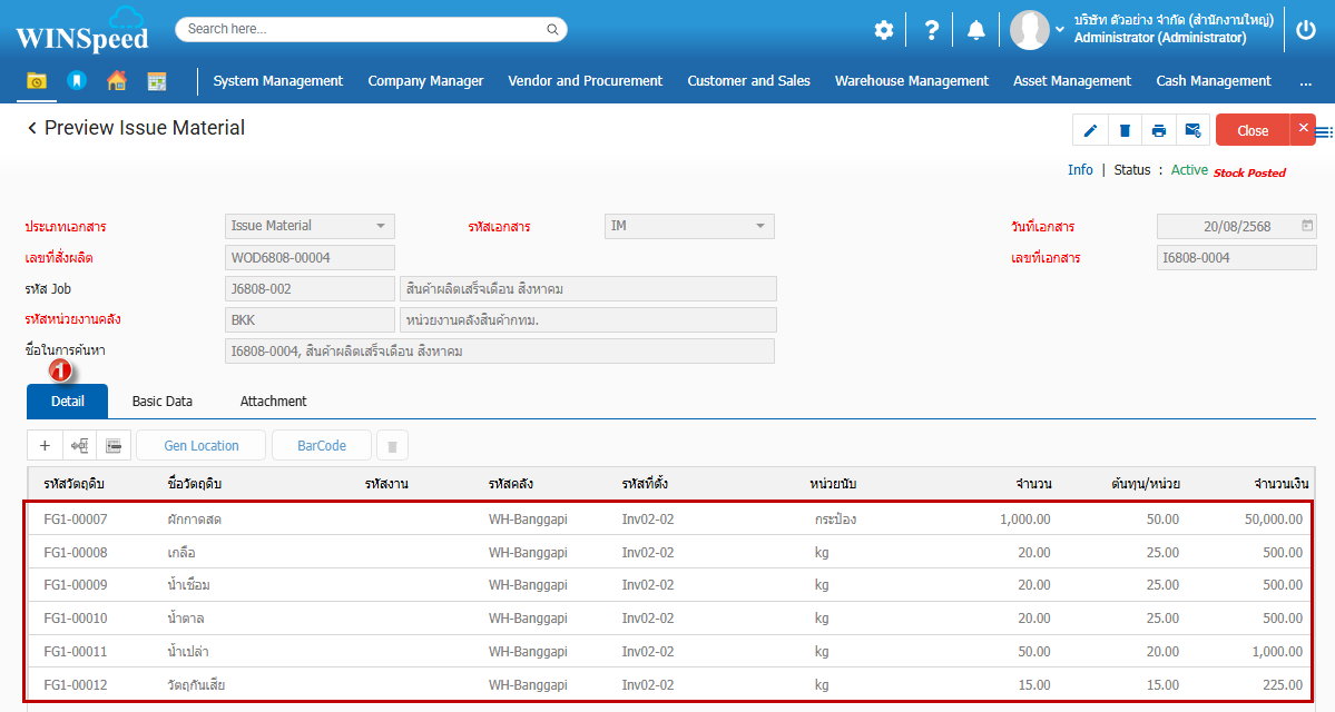 3.Tab Detail เป็นส่วนการกำหนดวัตถุดิบที่ใช้ในการเบิกวัตถุดิบในการผลิตสินค้า