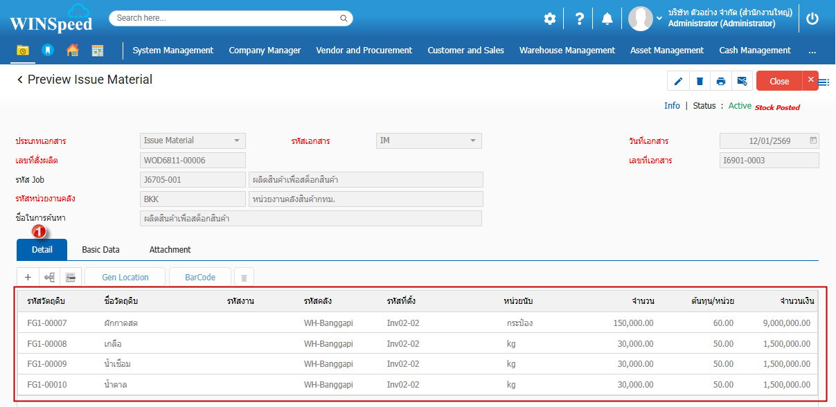 3. Tab Detail เป็นส่วนการกำหนดวัตถุดิบที่ใช้ในการส่งคืนวัตถุดิบในการผลิตสินค้า