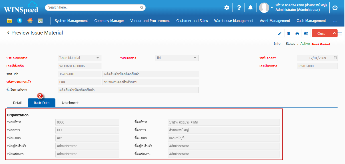 4. Tab Basic Data เป็นส่วนการกำหนดรายละเอียดเอกสารส่งคืนวัตถุดิบ