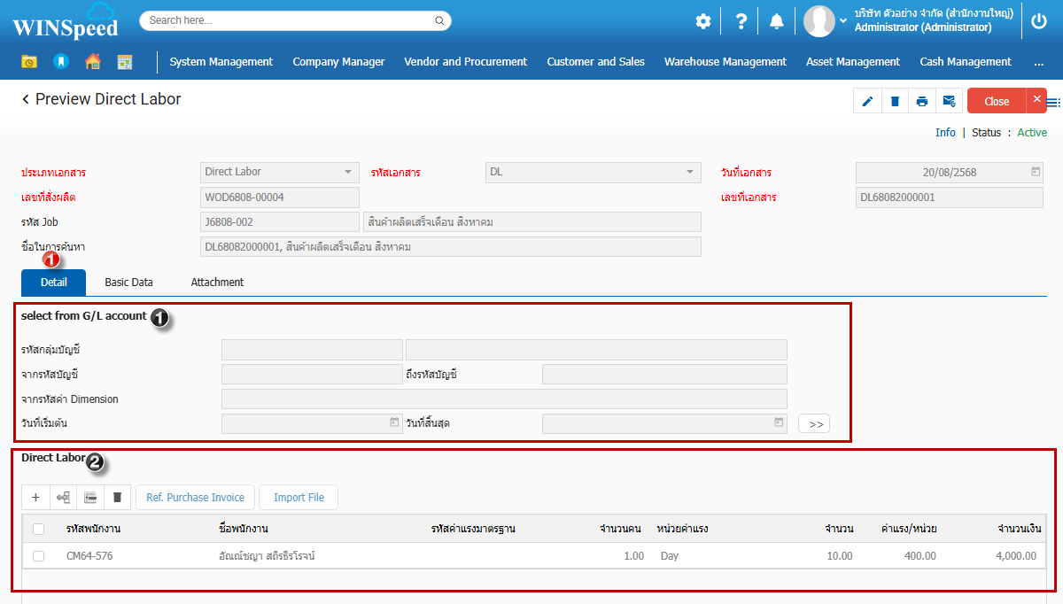4. Tab Basic Data เป็นส่วนการกำหนดรายละเอียดเอกสารค่าแรงทางตรง
