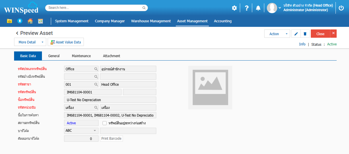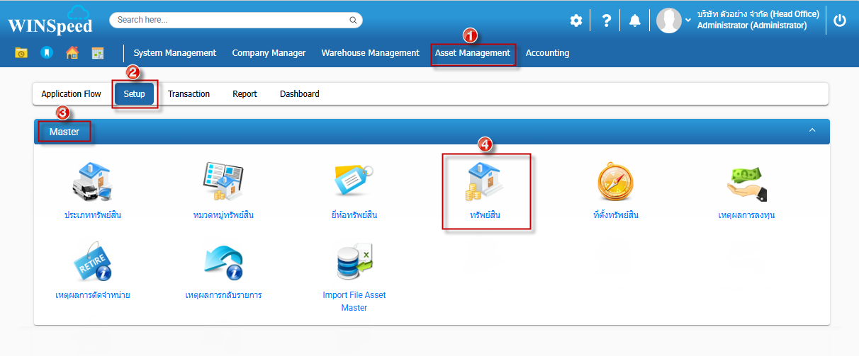 1.1 สามารถเข้าไปที่ Asset Management > Setup > Master >ทรัพย์สิน