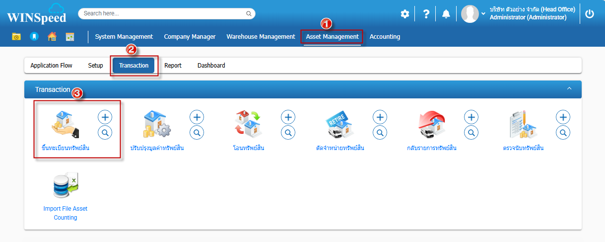 3.1สามารถเข้าไปที่ Asset Management > Transaction>ขึ้นทะเบียนทรัพย์สิน
