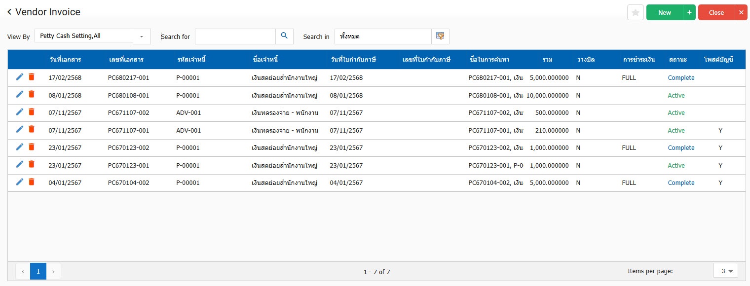 - สามารถบันทึกตั้งวงเงินสดย่อยได้ไม่จำกัดจำนวน