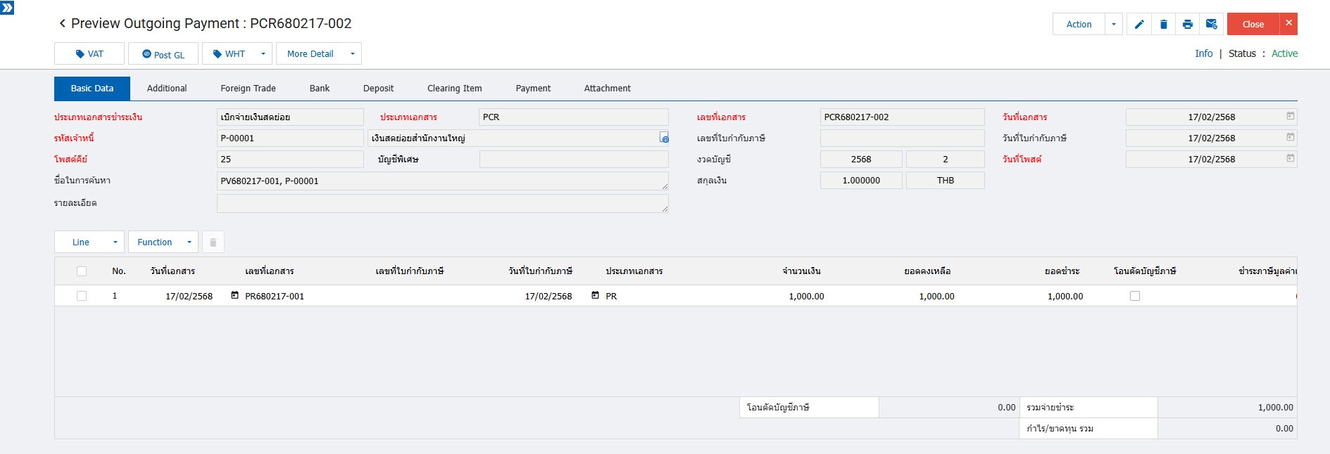 เบิกเงินคืนวงเงินสดย่อย