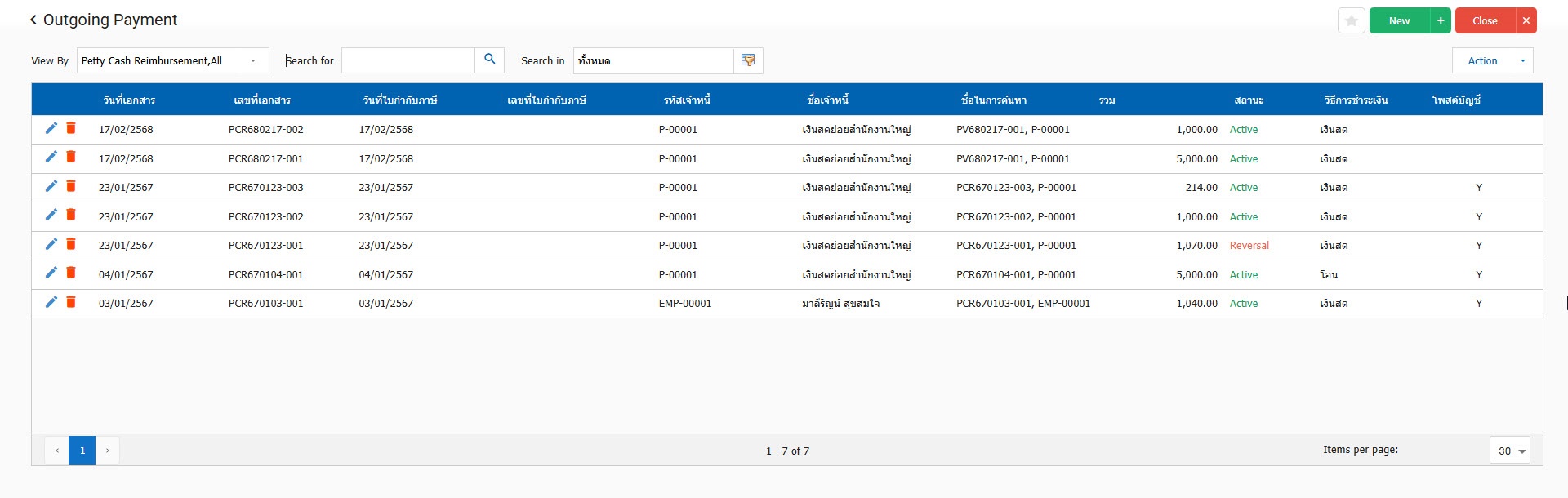 บันทึกค่าใช้จ่ายเงินสดย่อย