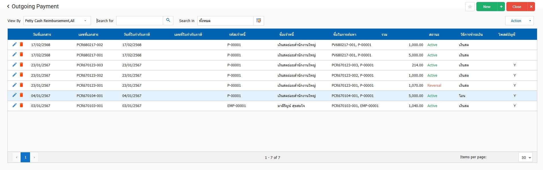 สามารถระบุวงเงินสดย่อย และเบิกคืนได้โดยไม่จำกัดจำนวนครั้ง