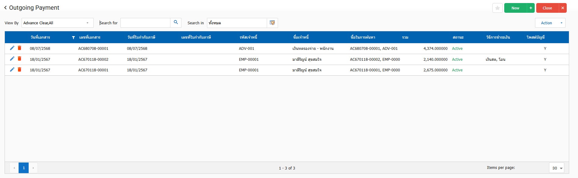 - โปรแกรมรองรับกรณีที่มีการเคลียร์เงินทดรอง น้อยกว่า หรือ มากกว่า จำนวนที่ขอเคลียร์ และมี รูปแบบของการรับการจ่ายมากกว่า 1 รูปแบบ