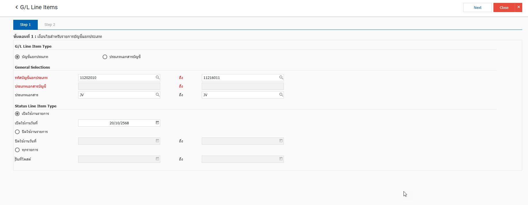 สามารถเรียกดู GL ได้ทั้ง ตามช่วงวันที่หรือตามเลขที่เอกสารได้