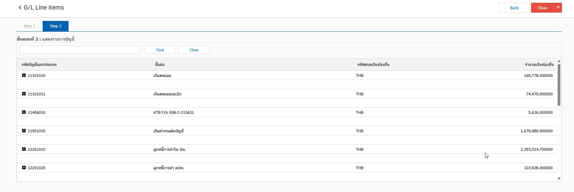 สำหรับเรียกดูรายละเอียดต่าง ๆ ของการบันทึกรายการบัญชีเข้าระบบ แยกตามแต่ละรหัสบัญชีในเอกสารได้ โดยสามารถเรียกดู เลขที่เอกสาร, วันที่ผ่านรายการ, ประเภทเอกสาร, จำนวนเงินในเอกสาร ยังสามารถเลือกดูรายละเอียดอื่น ๆ ของเอกสารหมายเลขนั้น ๆ ได้อีก เช่น รายการบัญชีที่ลงคู่กับบัญชีนั้น ๆ เป็นต้น