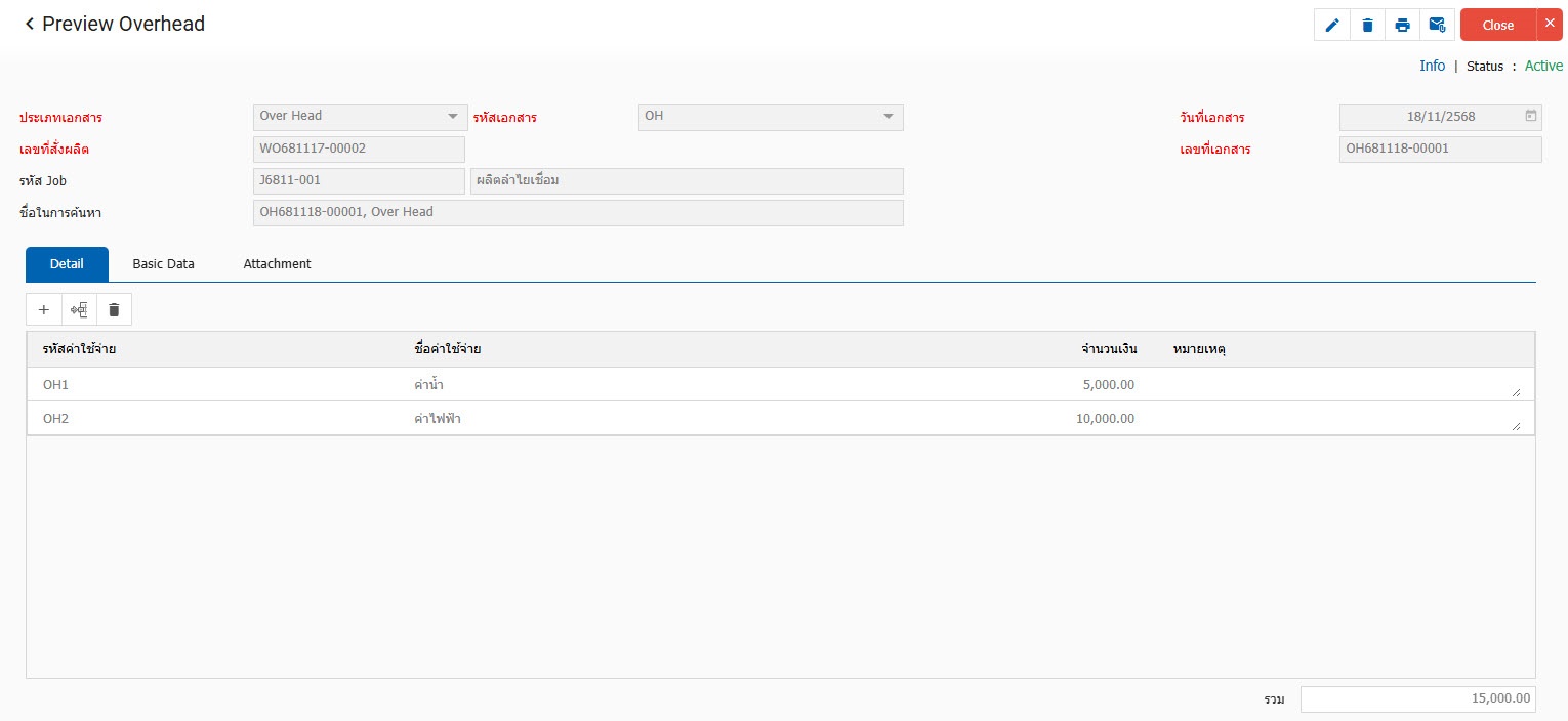 - ช่วยบันทึกค่ารายละเอียดใช้จ่ายที่เป็นค่าใช้จ่าย สินค้าที่ผลิตได้ตามใบสั่งผลิต