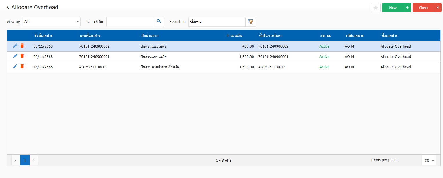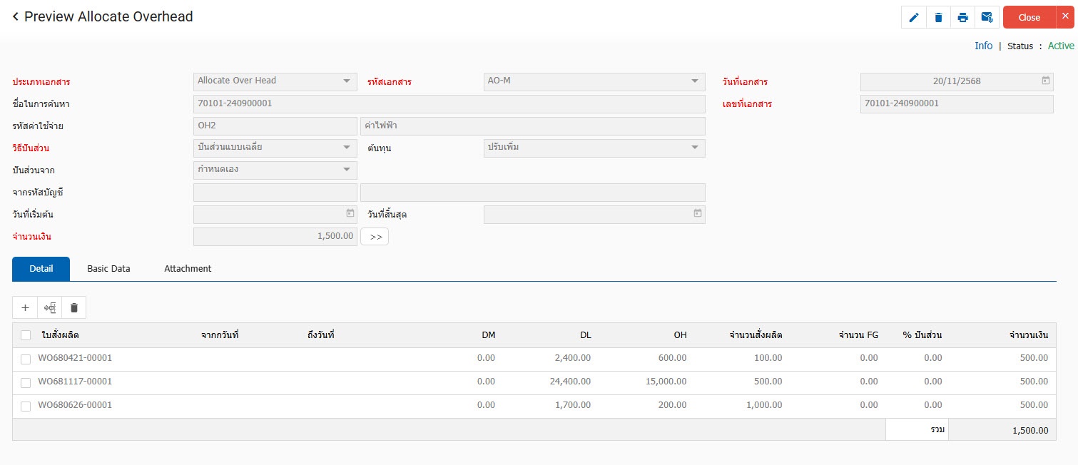 - สามารถบันทึกค่าใช้จ่ายเพิ่ม/ลด จากใบสั่งผลิตที่อ้างอิงมาบันทึกได้