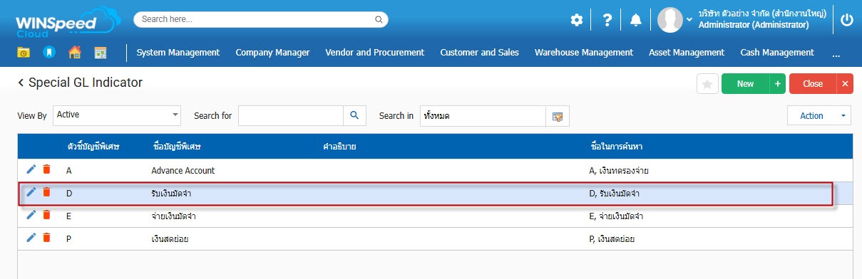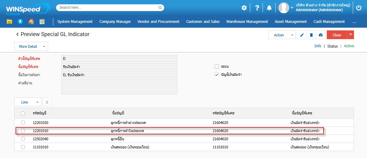 3.จากนั้นให้ไปที่ Accounting > General Ledger > บัญชีพิเศษ > เลือกรับเงินมัดจำ