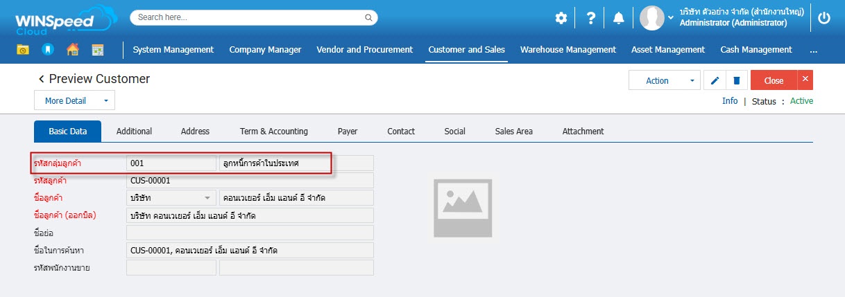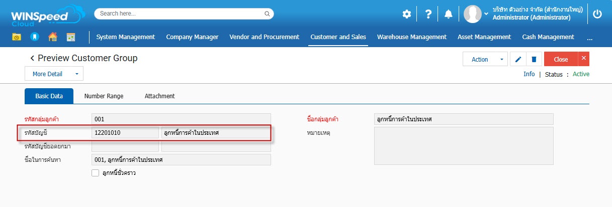 1.ตรวจสอบลูกหนี้ว่าอยู่ในรหัสกลุ่มลูกหนี้ไหน เพื่อที่จะได้ไปผูกกับรับเงินมัดจำ โดยสามารถเข้าไปที่ Customer and Sales >Master > ข้อมูลลูกค้า