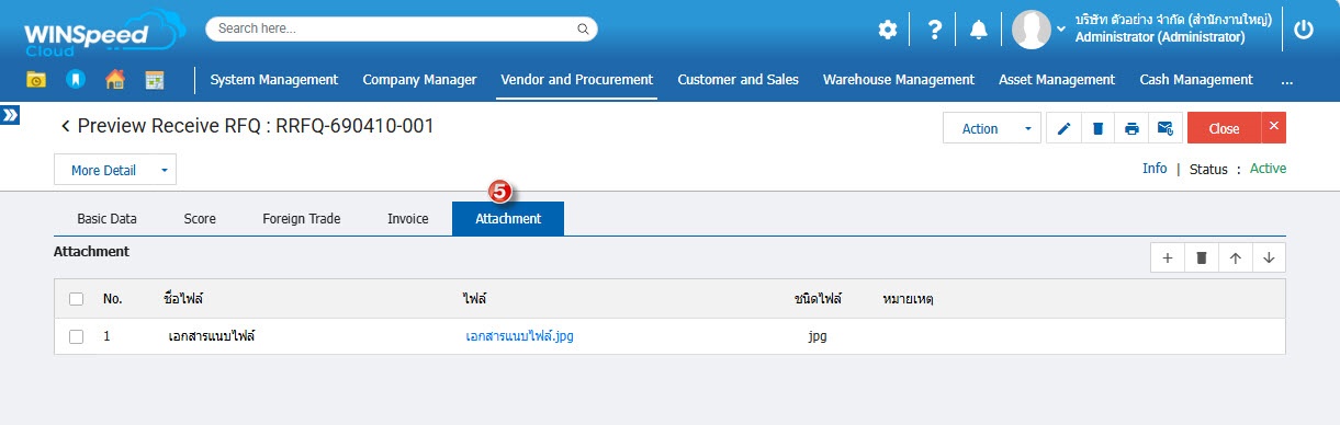 7.Attachment ใช้สำหรับกรณีต้องการแนบไฟล์เอกสารให้กับหน้าจอขอใบเสนอราคา เลขที่นั้นๆ สามารถแนบไฟล์ เช่น Word Pdf Excel รวมถึงไฟล์รูปต่างๆ