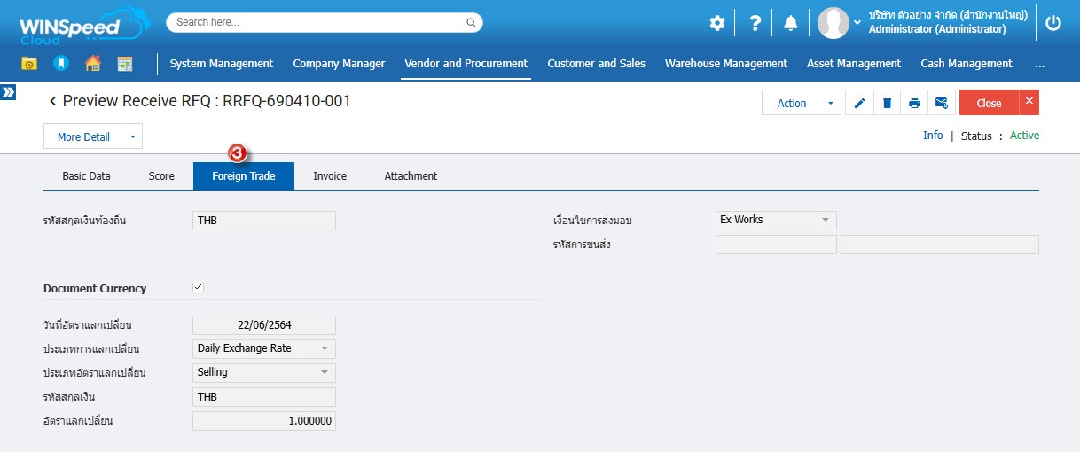 5. Foreign Trade บันทึกรายละเอียดข้อมูลสกุลเงินกรณีสั่งซื้อสินค้าจากต่างประเทศ