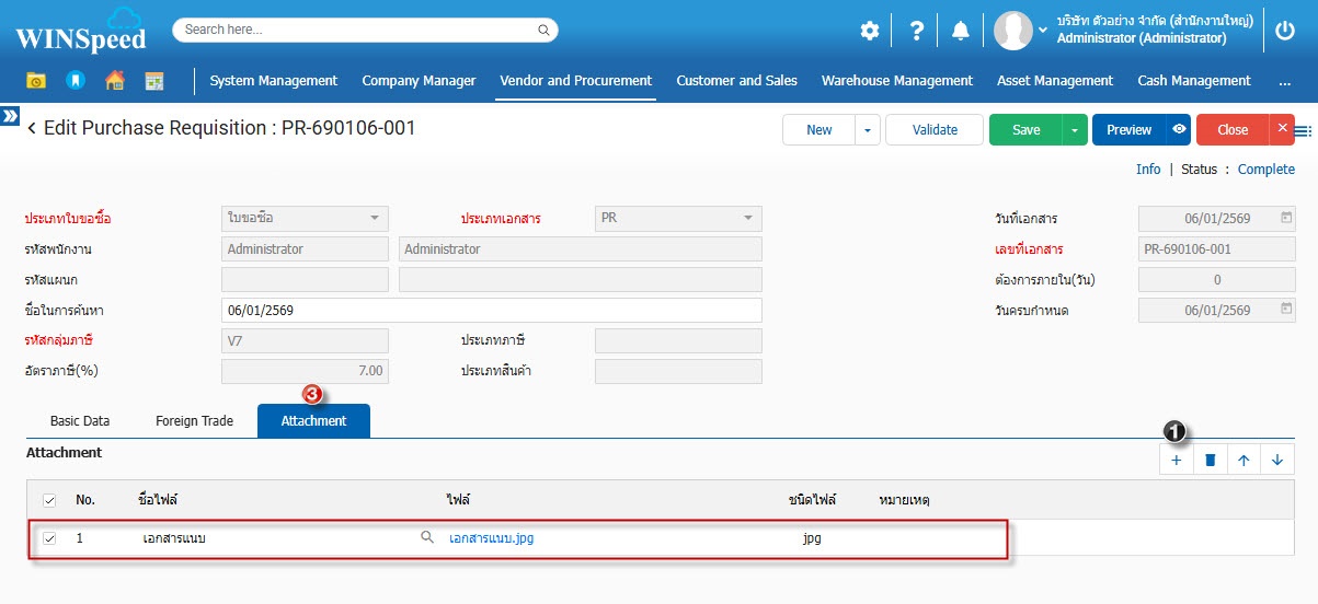 5.Attachment ใช้สำหรับกรณีต้องการแนบไฟล์เอกสารให้กับหน้าจอใบขอซื้อ เลขที่นั้นๆ สามารถแนบไฟล์ เช่น Word Pdf Excel รวมถึงไฟล์รูปต่างๆ และ ไฟล์ Zip เป็นต้น โดยสามารถจำกัดความจุของไฟล์เอกสารที่ใช้แนบได้