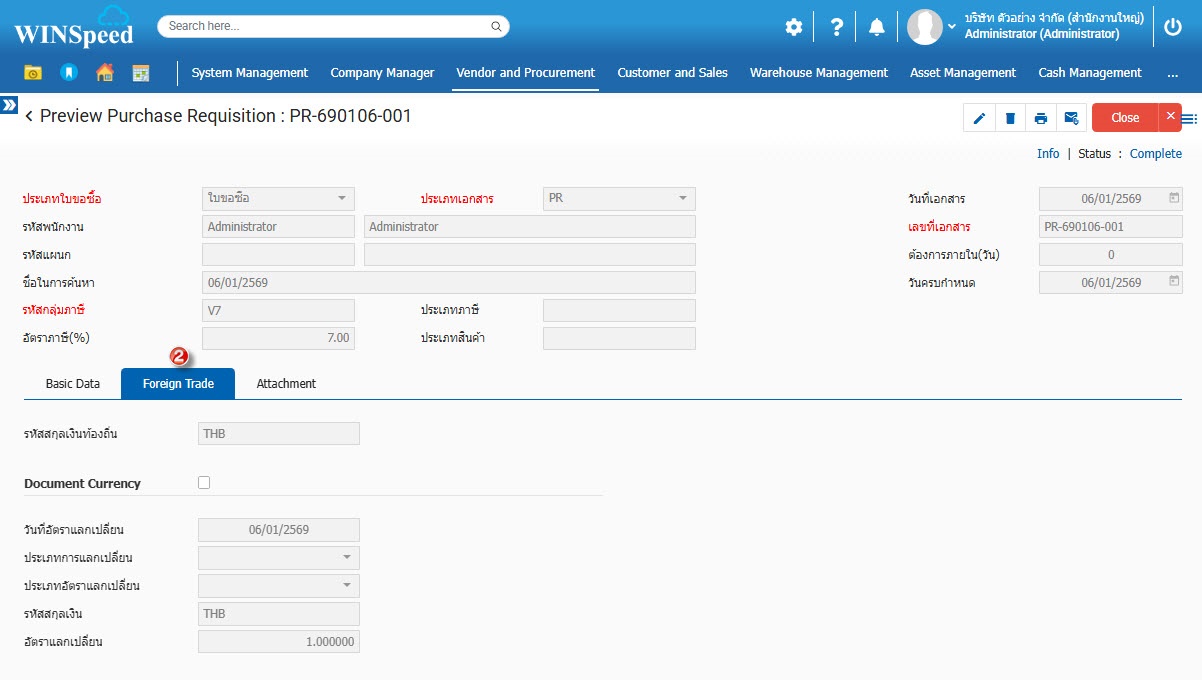 4. Foreign Trade บันทึกข้อมูลสกุลเงิน,อัตราแลกเปลี่ยน กรณีเป็นการสั่งซื้อจากผู้ขายต่างประเทศ