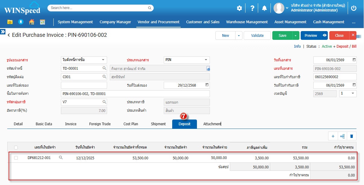5.Invoice บันทึกรายละเอียดเพิ่มเติมสำหรับใช้ในการบันทึกข้อมูลเจ้าหนี้เพิ่มเติม เช่น เงื่อนไขการชำระเงินให้ผู้ขาย เงื่อนไขการขนส่ง หน่วยงานจัดซื้อ งวดการจ่ายเงิน