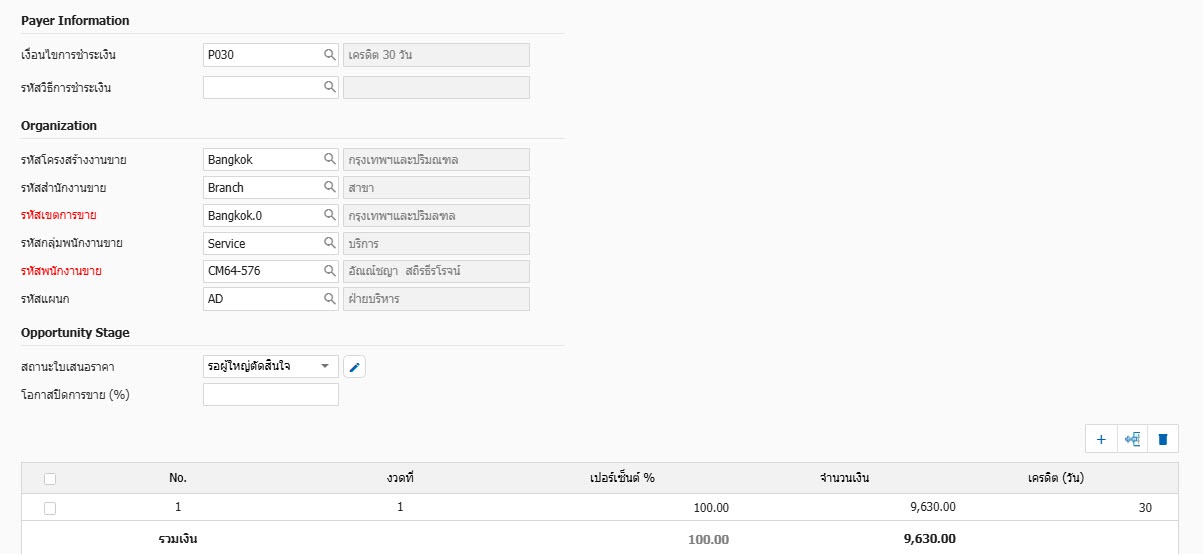 1.สามารถเข้าที่ระบบ Customer and Sales-> Transaction -> ใบเสนอราคา