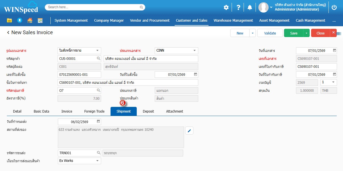 7.Shipment บันทึกสถานที่ส่งของลูกค้า