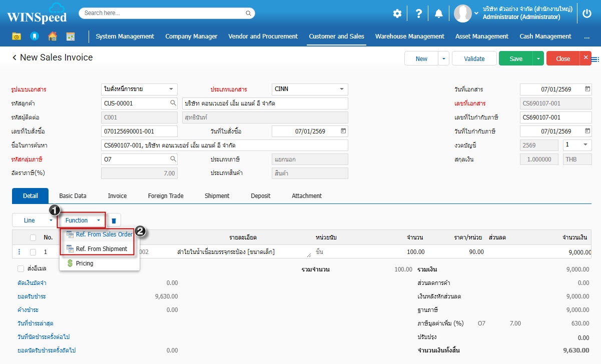 1.สามารถเข้าที่ระบบ Customer and Sales-> Transaction -> ขายสินค้า