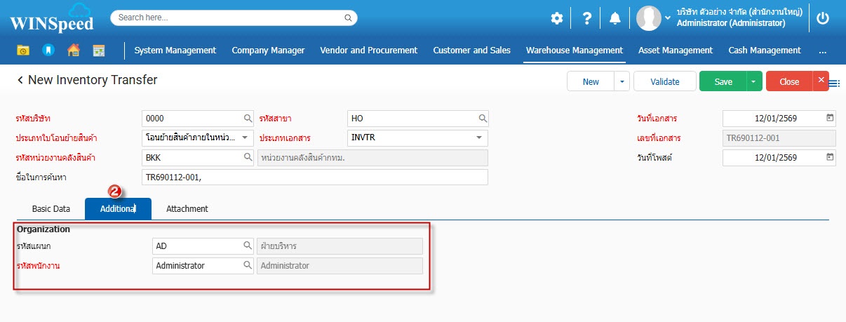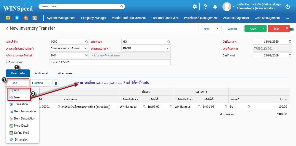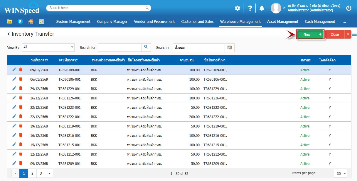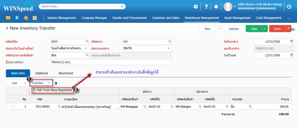 1.สามารถเข้าที่ระบบ Warehouse Management -> Transaction -> โอนย้ายสินค้าภายในหน่วยงาน