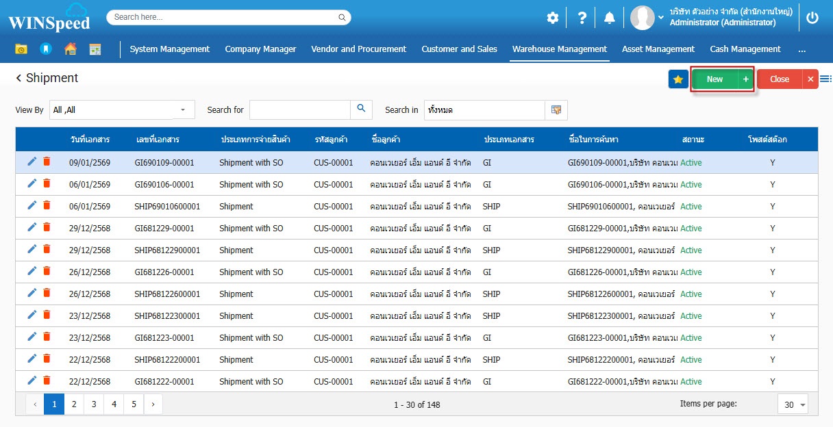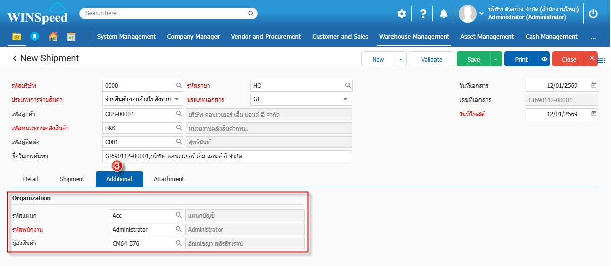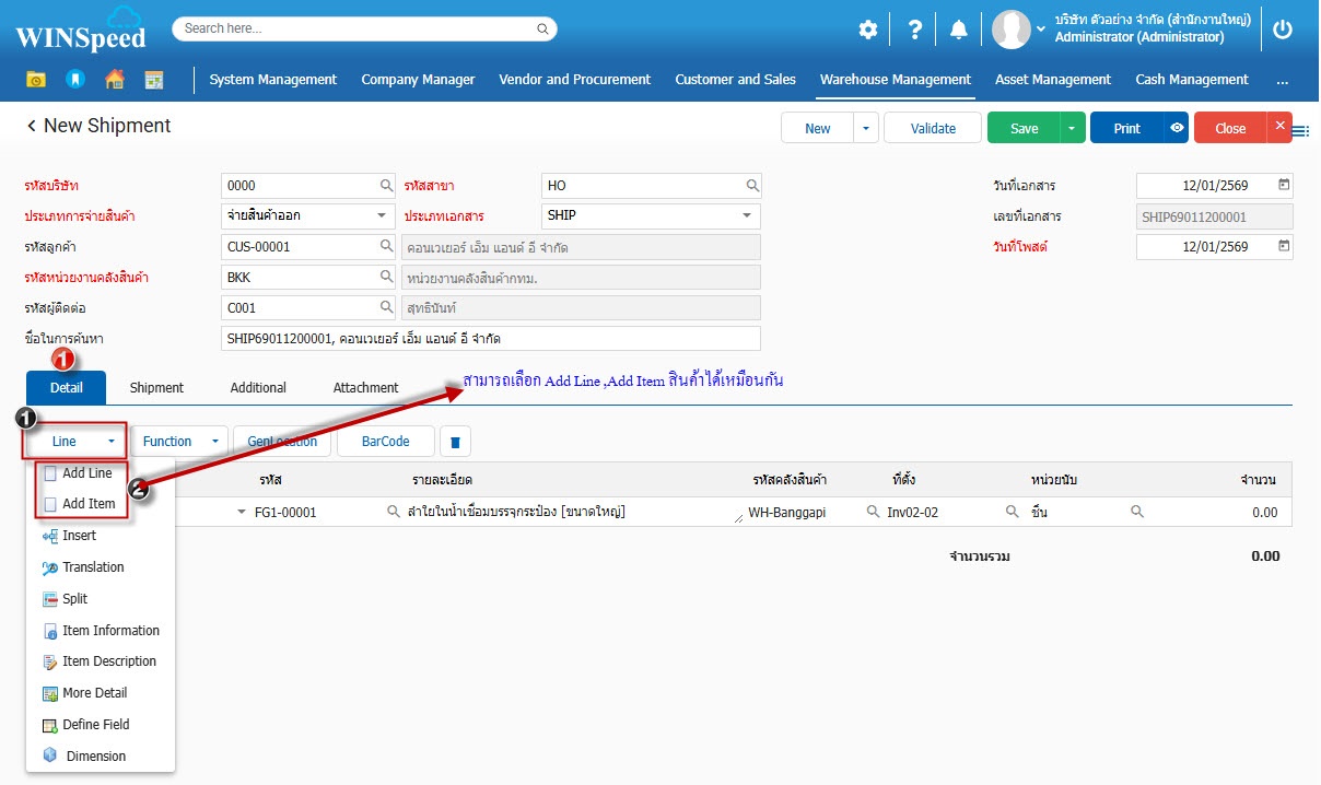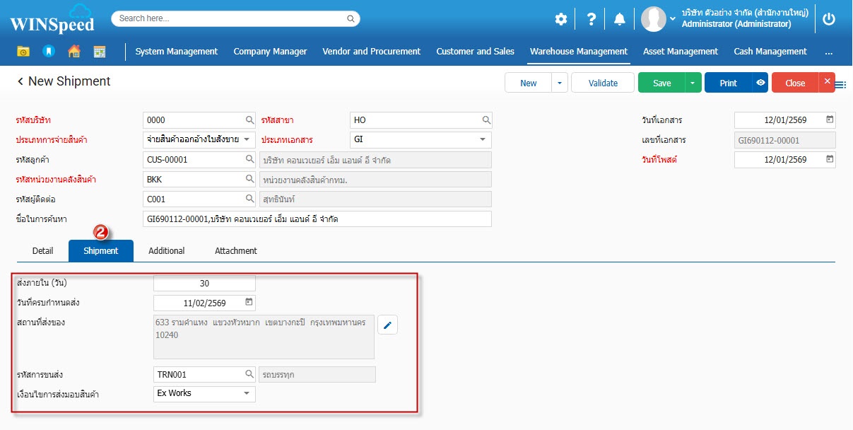 4.Shipment บันทึกสถานที่ส่งของลูกค้า