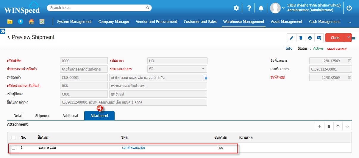 6.Attachment ใช้สำหรับกรณีต้องการแนบไฟล์เอกสารให้กับหน้าจอจ่ายสินค้าออกเลขที่นั้นๆ สามารถแนบไฟล์ เช่น Word Pdf Excel รวมถึงไฟล์รูปต่างๆ และ ไฟล์ Zip เป็นต้น โดยสามารถจำกัดความจุของไฟล์เอกสารที่ใช้แนบได้