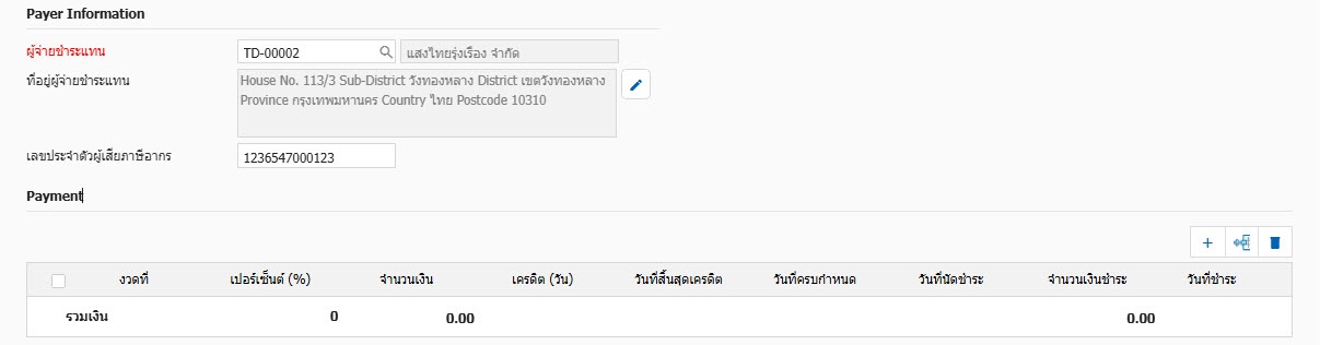 5.Invoice บันทึกรายละเอียดลดเติมสำหรับใช้ในการบันทึกลดหนี้ เช่น ที่อยู่ในเปิดบิลของผู้ขายพนักงานและหน่วยงานจัดซื้อ งวดการจ่าย