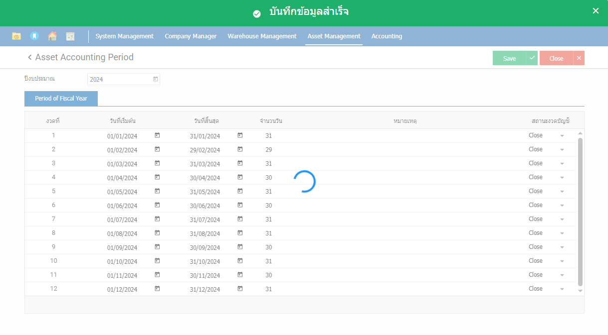 หมายเหตุ : สถานะงวดบัญชี เป็นการเลือกสถานะของงวดบัญชี