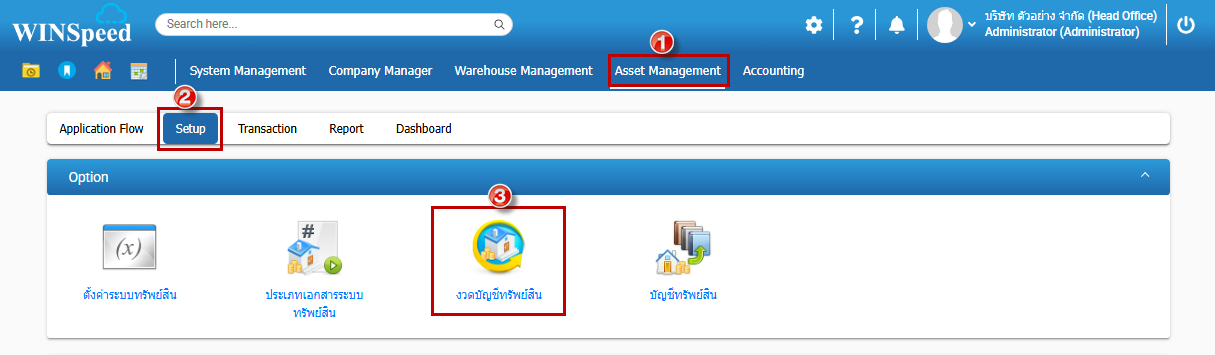 1.สามารถเข้าที่ระบบ Asset Management > Setup > คลิกงวดบัญชีทรัพย์สิน