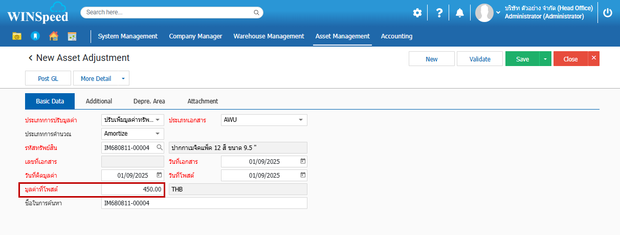 2.จากนั้นได้มีการปรับปรุงมูลค่าทรัพย์สินเพิ่มของทรัพย์ของทรัพย์สินด้วยรหัส IM680811-00004 เข้าไป ณ เดือนกันยายน อีก 450