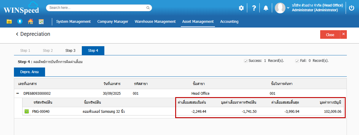 5.Step 4 การคำนวณค่าเสื่อมถูกต้อง